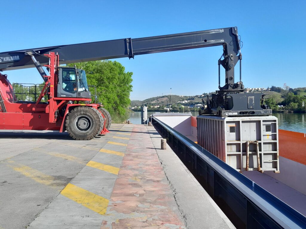 Sur le Rhône, nous exploitons trois barges dédiées au transport de marchandises en vrac et en conteneurs, permettant de déplacer d’importants volumes de marchandises tout en limitant significativement les émissions de CO₂ par rapport au transport routier.